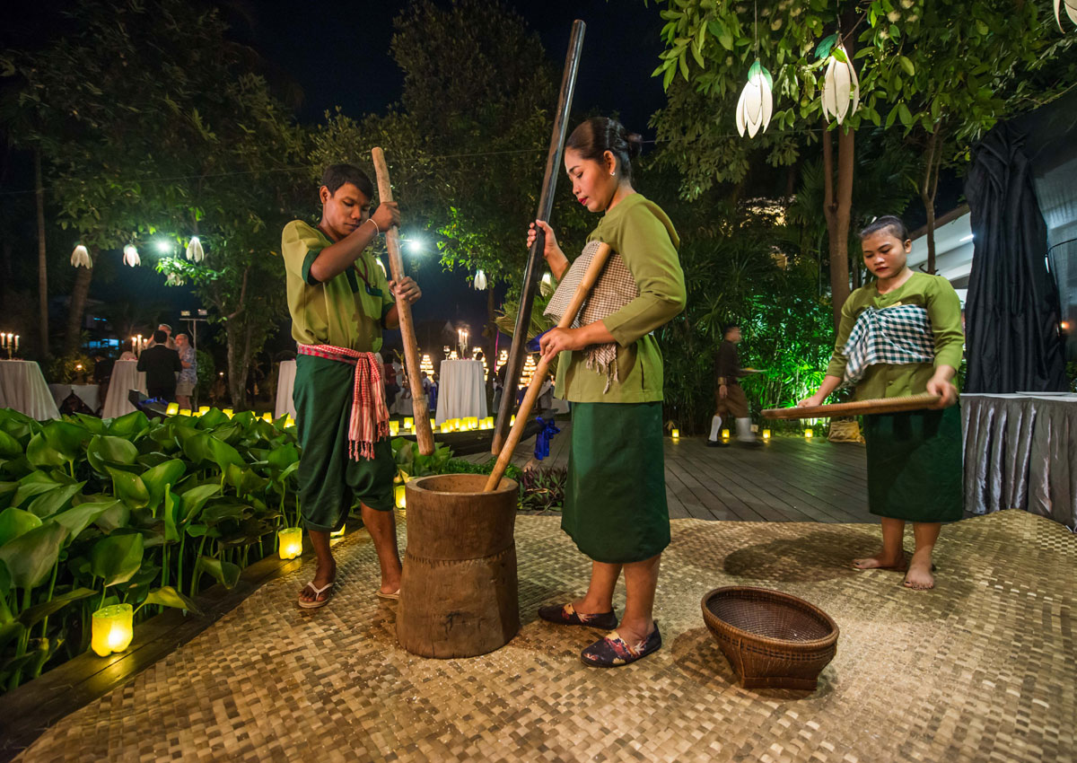 1If you are traveling to Cambodia and are looking for something exciting to do that both provides a luxurious evening out and a unique view into Cambodian traditions, don’t miss the cultural dining experience at Borei Angkor Resort & Spa in Siem Reap. While you enjoy a well-appointed Cambodian set meal, you will be entertained with various traditional dance & performance, selected for this one-of-a-kind dining experience. Enjoy your meal in front of a stage in an outdoor oasis, The Pavilion.